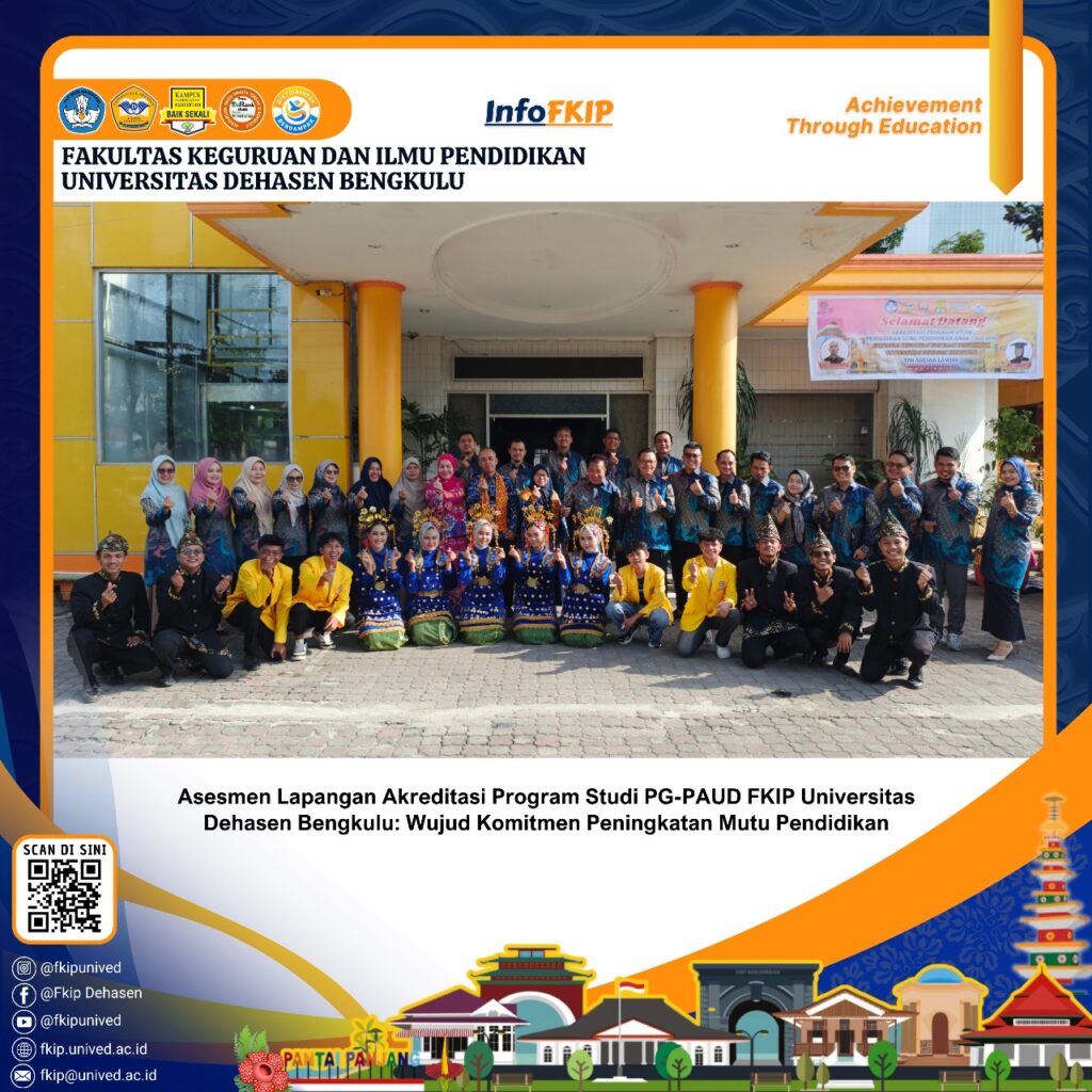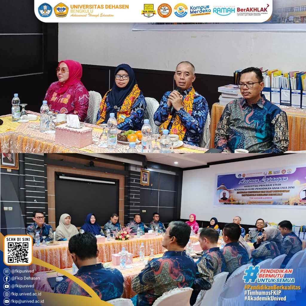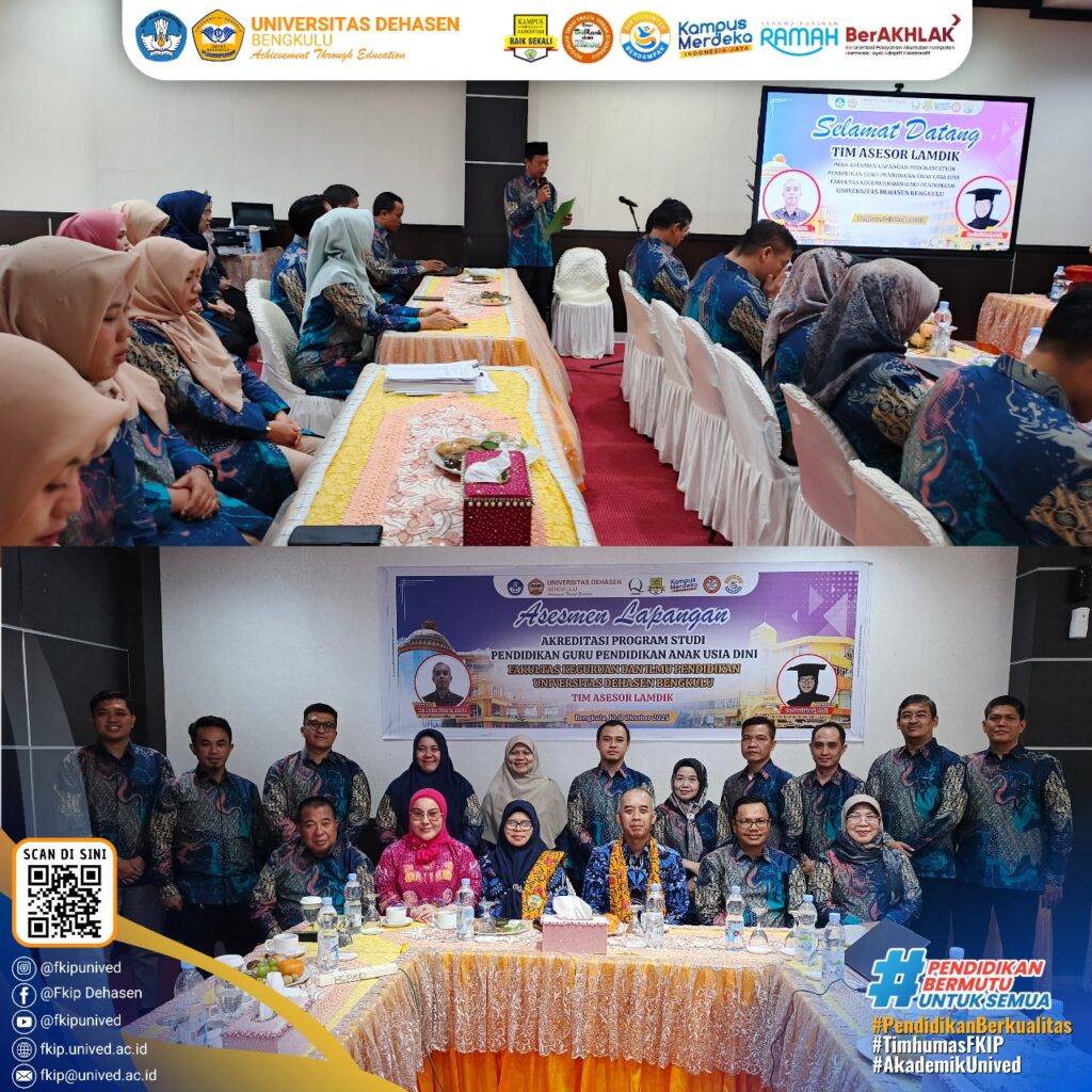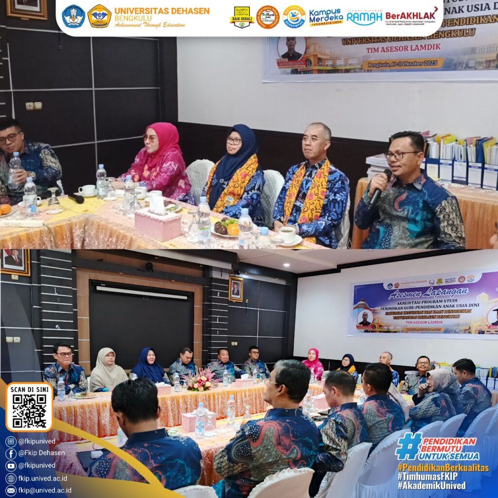 “Kami memandang asesmen lapangan ini sebagai kesempatan berharga untuk belajar dan berbenah. Setiap proses evaluasi membawa peluang untuk memperkuat mutu akademik dan tata kelola universitas. Universitas Dehasen Bengkulu berkomitmen untuk menghasilkan lulusan yang unggul, berkarakter, dan mampu menjadi pendidik profesional yang membentuk generasi emas Indonesia sejak usia dini,” ujar Prof. Husaini dalam sambutannya.