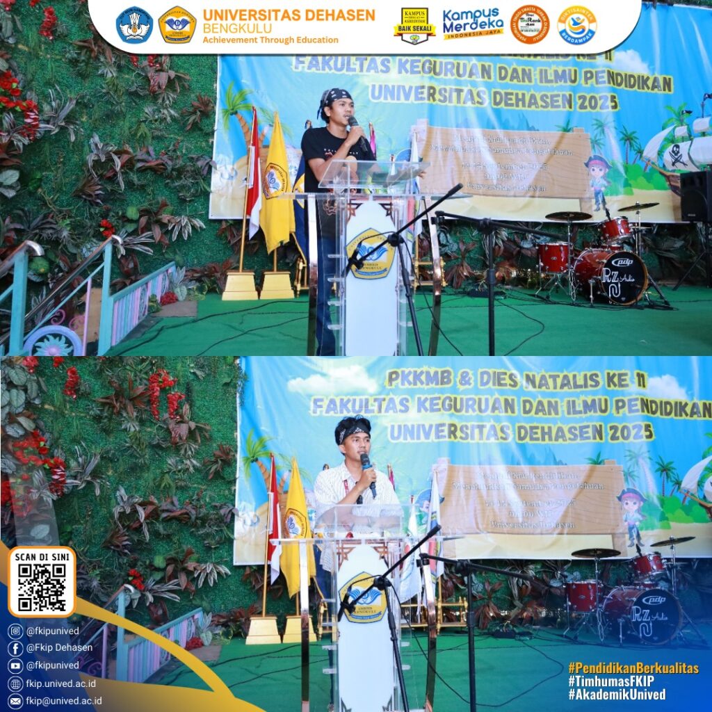 Ia menambahkan harapannya agar PKKMB tidak hanya menjadi kegiatan seremonial, melainkan mampu menumbuhkan rasa kekeluargaan dan kebanggaan sebagai bagian dari FKIP. “Semoga Dies Natalis ke-11 ini menjadi refleksi bersama bahwa FKIP harus terus bergerak maju, memberikan kontribusi nyata bagi dunia pendidikan, dan menghasilkan lulusan yang berkualitas,” tutup Jeki.