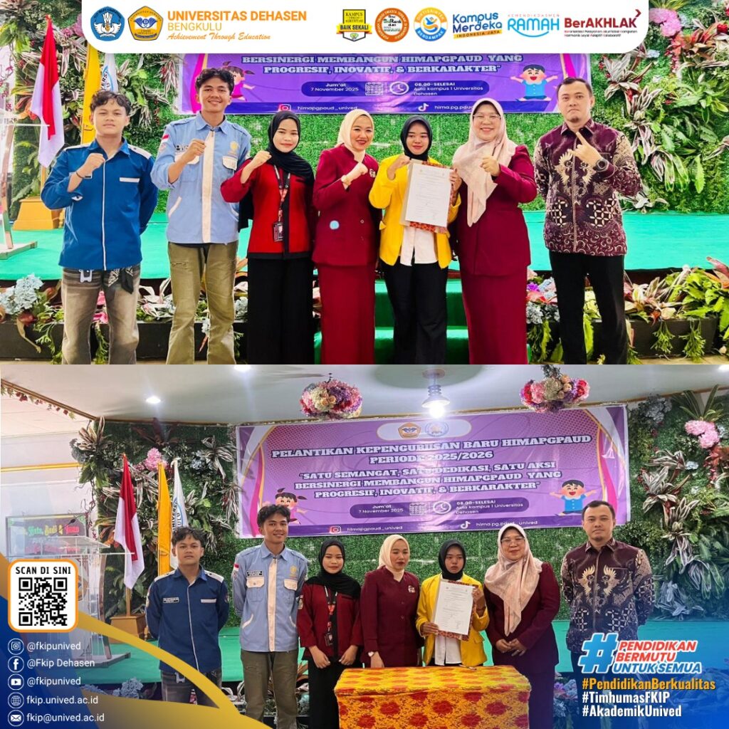 Bengkulu, 07 November 2025 — Himpunan Mahasiswa Pendidikan Guru Pendidikan Anak Usia Dini (HIMAPGPAUD) Universitas Dehasen Bengkulu resmi melaksanakan Pelantikan Kepengurusan Baru Periode 2025/2026 dengan mengusung tema “Satu Semangat, Satu Dedikasi, Satu Aksi Bersinergi Membangun HIMAPGPAUD yang Progresif, Inovatif, dan Berkarakter.”