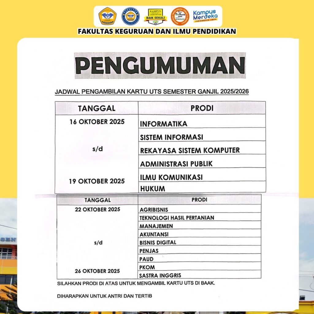 PENGUMUMAN- teerkait jadwal pengambilan Kartu UTS Semester ganjil 2025/2026