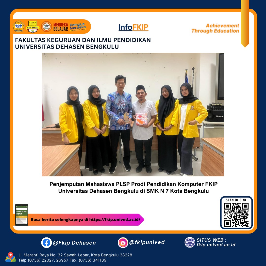 FKIP Unived – Pengenalan Lingkungan Satuan Pendidikan (PLSP) yang dijalani oleh mahasiswa Program Studi Pendidikan Komputer FKIP Universitas Dehasen Bengkulu di SMK Negeri 7 Kota Bengkulu resmi berakhir dengan prosesi penjemputan yang berlangsung hari Senin, 17 Maret 2025. (17/03/2025)