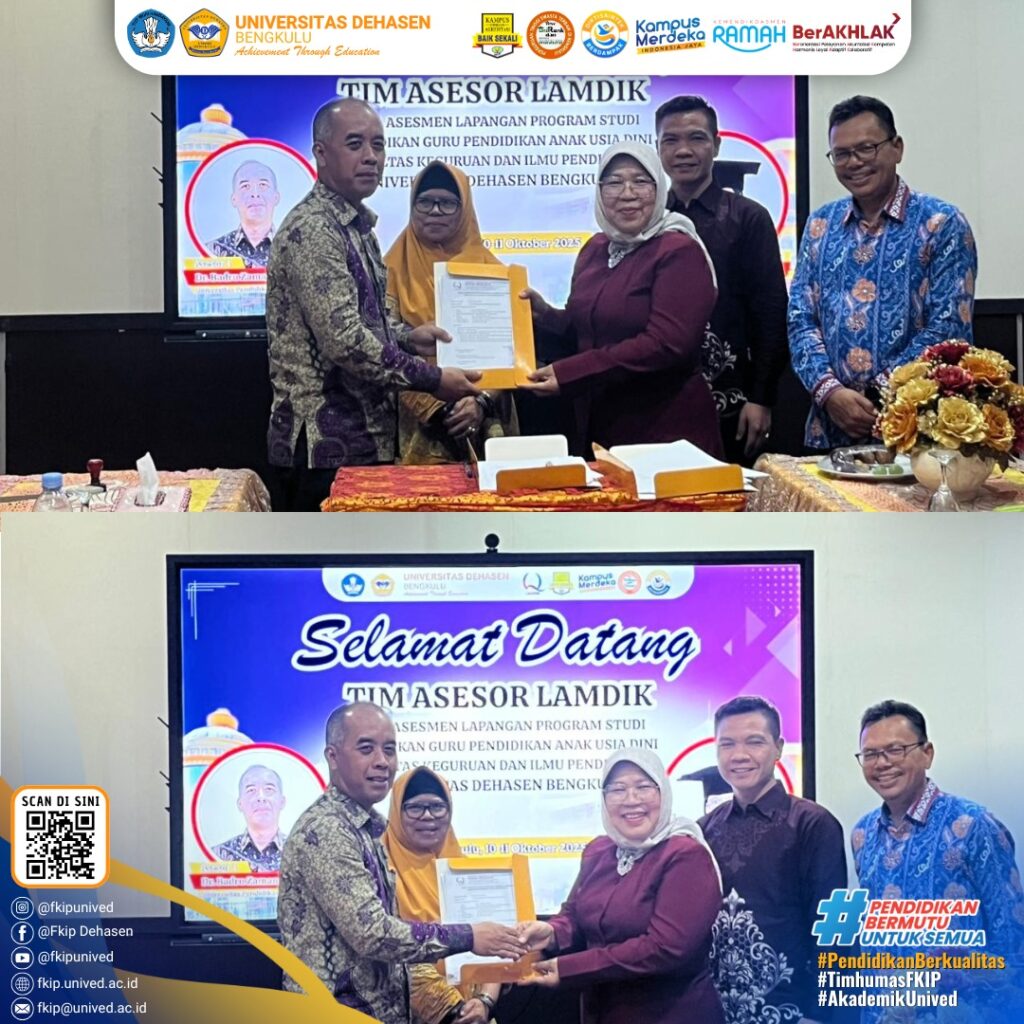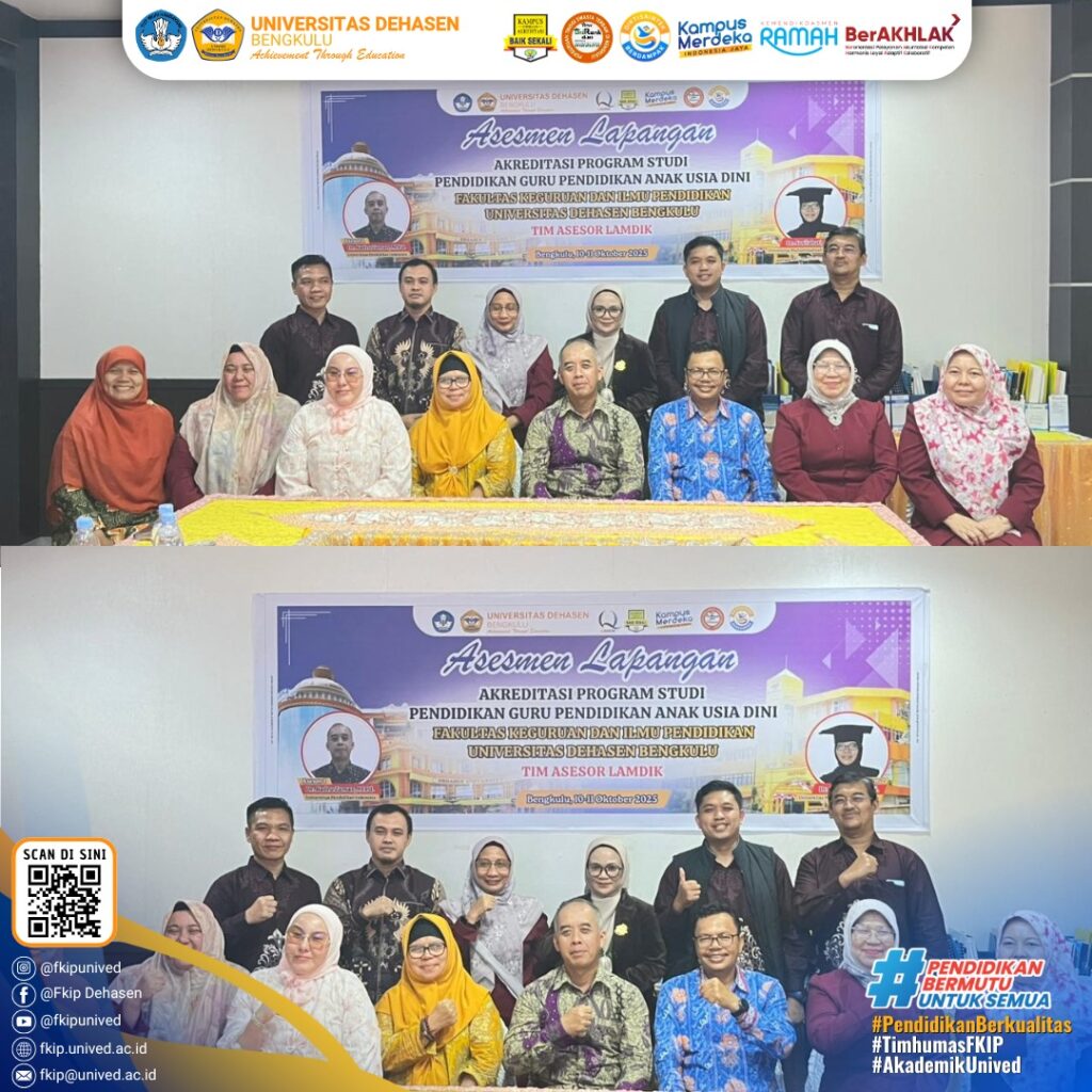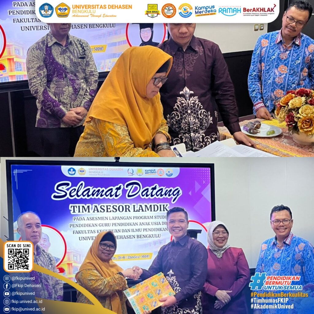 “Kami melihat adanya semangat dan komitmen yang luar biasa dari seluruh tim Universitas Dehasen Bengkulu, khususnya Program Studi PG-PAUD. Kesiapan dokumen, keterbukaan informasi, serta suasana kerja sama yang baik menunjukkan bahwa program studi ini telah memiliki fondasi mutu yang kokoh. Kami berharap semangat ini terus dijaga dan dikembangkan agar PG-PAUD semakin berperan dalam mencetak pendidik anak usia dini yang profesional dan berkarakter,” ujarnya.