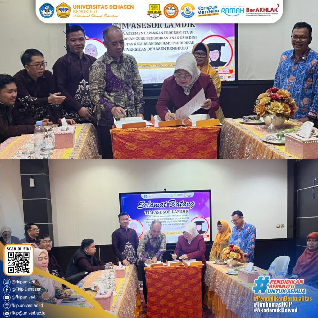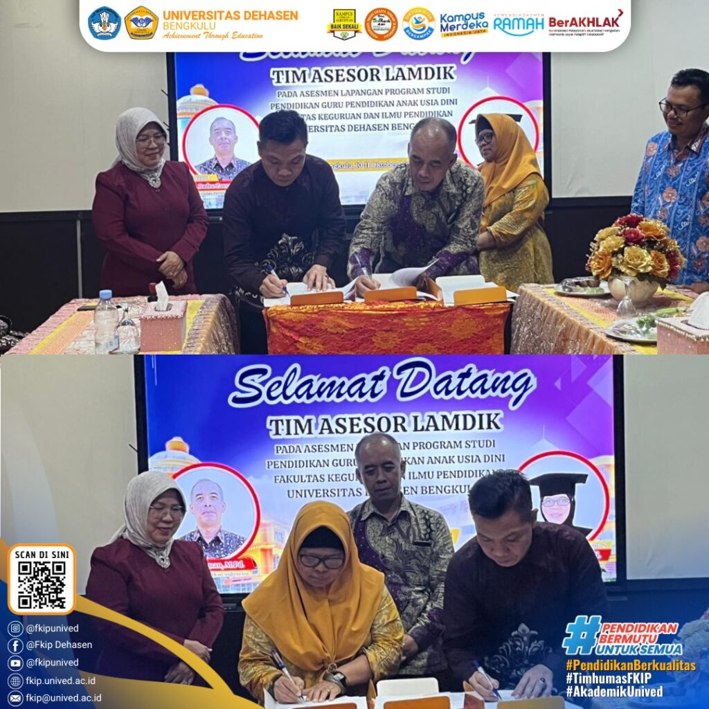 Pada hari kedua pelaksanaan, kegiatan difokuskan pada proses finalisasi dan penandatanganan Berita Acara Asesmen Lapangan. Dokumen tersebut secara resmi ditandatangani oleh Dekan FKIP Universitas Dehasen Bengkulu dan Ketua Program Studi PG-PAUD, yang dalam kesempatan ini diwakilkan oleh Dr. Mimpira Haryono, M.Pd.