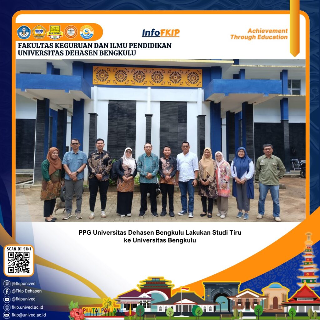 Bengkulu, 21 Oktober 2025 — Tim Program Pendidikan Profesi Guru (PPG) Fakultas Keguruan dan Ilmu Pendidikan (FKIP) Universitas Dehasen Bengkulu melaksanakan kegiatan studi tiru ke Universitas Bengkulu (UNIB). Kegiatan ini berlangsung di Gedung PPG FKIP Universitas Bengkulu mulai pukul 08.30 hingga 12.00 WIB.